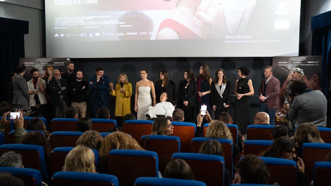 Tra gli ospiti il calciatore del Napoli Alessandro Buongiorno, l’attrice e influencer Valeria Angione, gli attori Gino Rivieccio, Biagio Manna, Imma Pirone, il duo I Dediseri, il mago Jay Lillo. Al termine della proiezione la commozione della sala per la storia ispirata alla straordinaria vita di Federica Paganelli, una delle prime ragazze al mondo a convivere oltre 20 anni con l’Atrofia muscolare spinale (SMA) o morbo di Werdnig-Hoffmann, presente alla serata.
