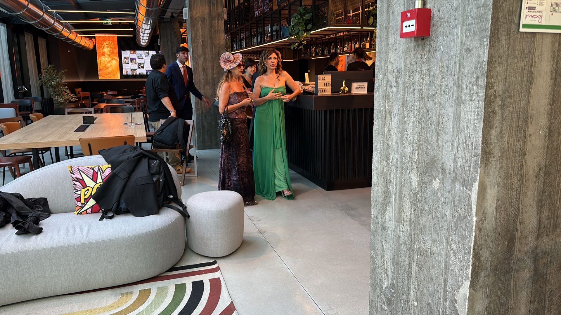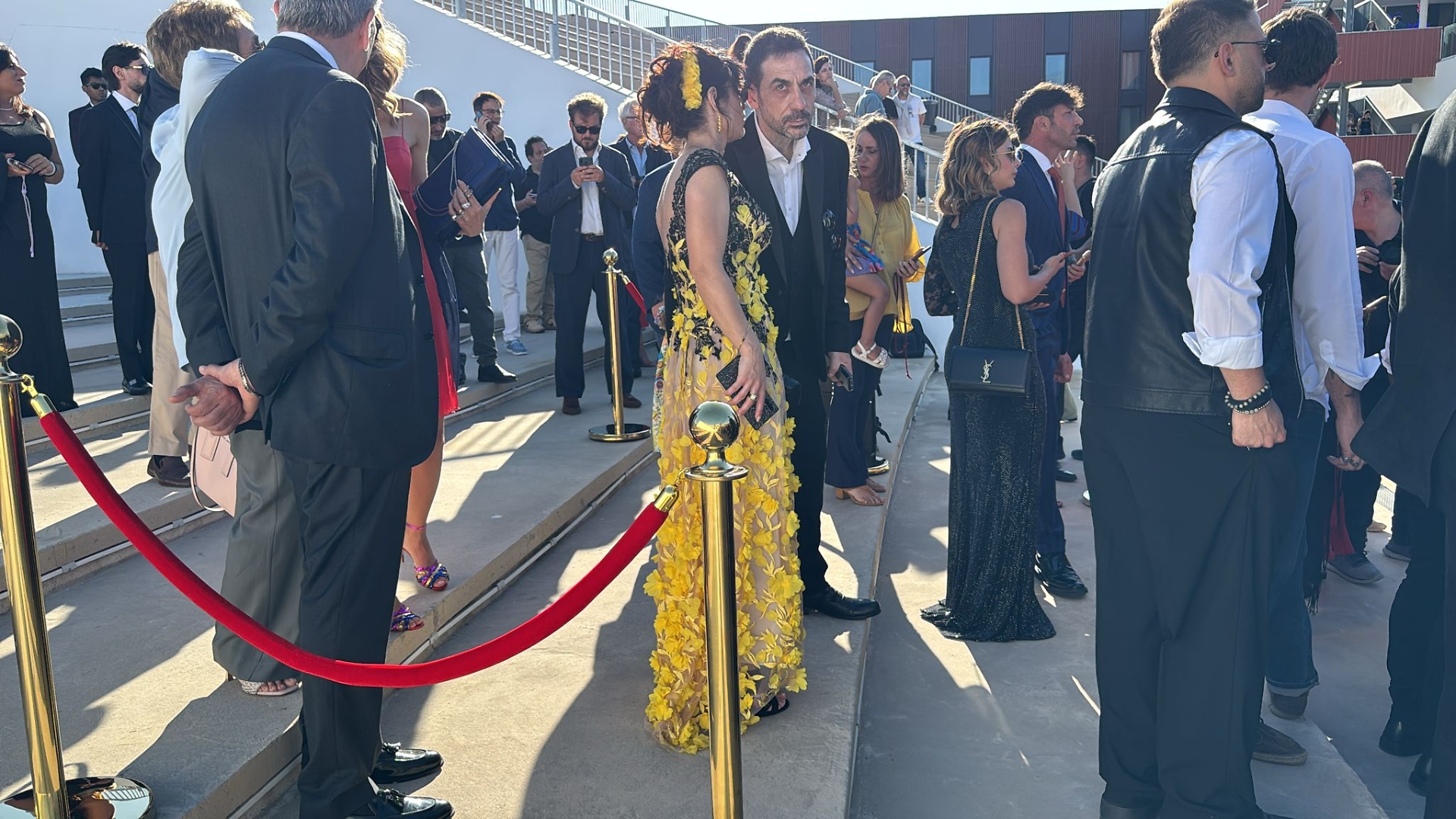 Abiti eleganti, che le donne hanno scelto soprattutto da atelier napoletani (Saman Loira, Invito, Pierangeli che vestirà Annarita Borelli durante l'intera kermesse... ieri sera era interamente tempestata di cristalli swarovsky). Gara di zeppe e tacchi vertiginosi nelle più fantasiose forme e fatture, dalle quali nemmeno gli uomini sono riusciti a sottrarsi. E le collane le portano solo "i signori" della festa.