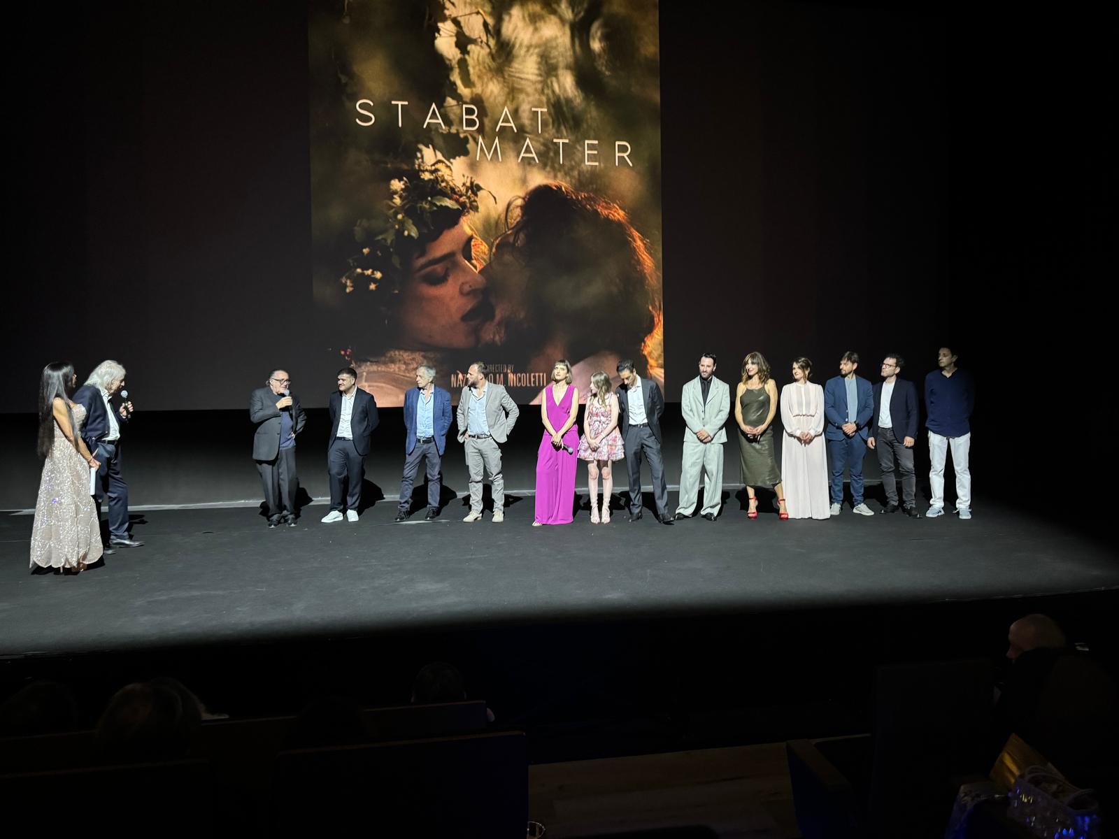 Primo film fuori gara "Stabat Mater". Sul palco del Nexus al Maximall Pompei, di Torre Annunziata, dove si svolgerà la settimana dedicata al cinema che quello che "fa pensare", l'intero cast della pellicola proiettata per dare avvio all'evento.