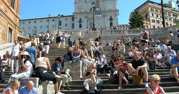 ROMA. Vietato sedersi sulla scalinata di Trinità dei Monti, uno dei luoghi turistici più famosi al mondo, immortalato in centinaia di film e canzoni, 135 gradini patrimonio dell'Unesco. È infatti scattato il divieto previsto dl regolamento della polizia Municipale di Roma. I turisti storcono il naso, ma obbediscono. Non hanno altra scelta. otto vigili urbani vigilano.