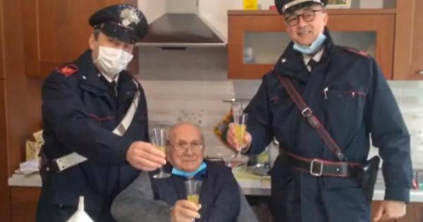 Il suo appello ha ottenuto l'effetto desiderato: pochi minuti dopo due ufficiali dei carabinieri si sono presentati a casa sua e hanno brindato insieme a lui. L'uomo ha raccontato ai militari alcuni aneddoti sulle sue esperienze durante la Seconda Guerra Mondiale e ha effettuato una videochiamata con i suoi parenti, sempre al fianco dei due militari dell'Arma.