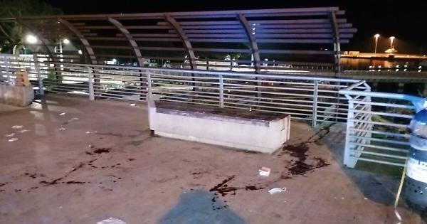Le macchie di sangue lasciate sul marciapiedi al fianco della panchina attorno alla quale è scoppiato il parapiglia, danno la misura della gravità di quanto accaduto.