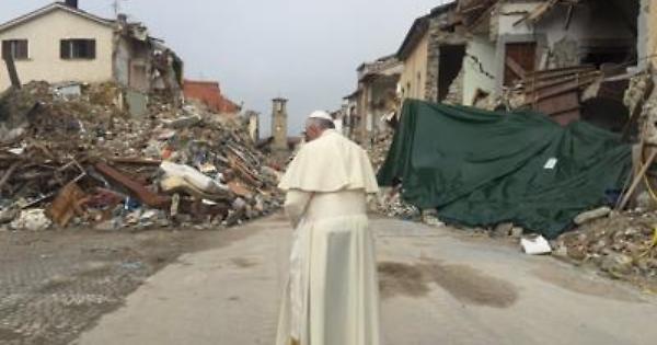 AMATRICE. Papa Francesco è arrivato ad Amatrice, per visitare la popolazione devastata dal terremoto del 24 agosto. Una visita annunciata ma compiuta 'a sorpresa' nella mattinata odierna, appena due giorni dopo il suo rientro dal viaggio apostolico in Georgia e in Azerbaigian. Accompagnato dal vescovo di Rieti monsignor Domenico Pompili, il Santo Padre ha visitato la scuola prima di spostarsi nella 'zona rossa' del paese. "Ho pensato bene nei primi giorni di questi tanti dolori che la mia visita, forse, era più un ingombro che un aiuto che un saluto - ha detto Bergoglio - e non volevo dare fastidio e per questo ho lasciato passare un pochettino di tempo affinché si sistemassero alcune cose, come la scuola. Ma dal primo momento ho sentito che dovevo venire da voi!". "Semplicemente - ha proseguito il Pontefice - voglio dirvi che vi sono vicino, che vi sono vicino, niente di più; e che prego, prego per voi! Vicinanza e preghiera, questa è la mia offerta a voi. Che il Signore benedica tutti voi, che la Madonna vi custodisca in questo momento di tristezza e dolore e di prova".