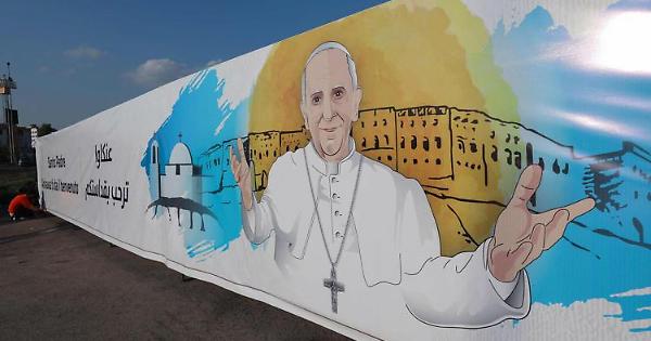 Bergoglio incoraggia il popolo iracheno: "Vorrei portarvi la carezza affettuosa di tutta la Chiesa, che è vicina a voi e al martoriato Medio Oriente e vi incoraggia ad andare avanti. Alle terribili sofferenze che avete provato e che tanto mi addolorano, non permettiamo di prevalere. Non arrendiamoci davanti al dilagare del male: le antiche sorgenti di sapienza delle vostre terre ci orientano altrove, a fare come Abramo che, pur lasciando tutto, non smarrì mai la speranza (cfr Rm 4,18); e fidandosi di Dio diede vita a una discendenza numerosa come le stelle del cielo. Cari fratelli e sorelle, guardiamo le stelle. Lì è la nostra promessa".