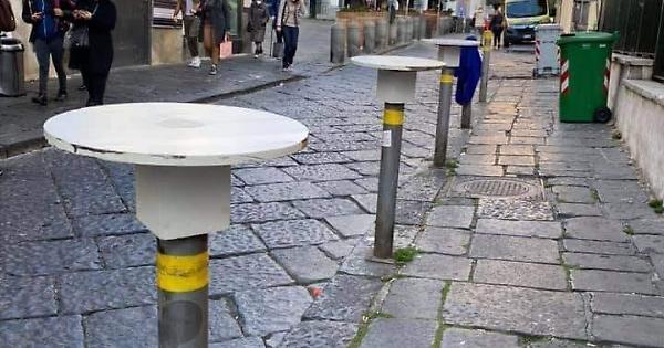 L'originalità e l'inventiva dei napoletani non ha limite. Nel centro storico di Napoli infatti, nella zona della Pignasecca, adiacente la funicolare di Montesanto, i paletti che delimitano il marciapiede sono diventati degli appoggi per i bar. Un appoggio per bere un caffé, o una Coca Cola. Nei bar non è ancora possibile consumare nulla infatti.