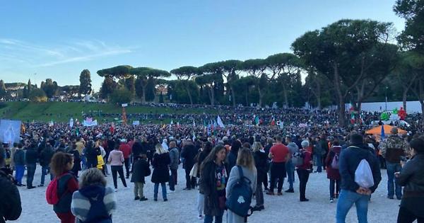 No Green pass oggi a Roma, sono circa 3mila i manifestanti che partecipano al sit-in del Circo Massimo, a Roma. Quasi tutti senza mascherina i partecipanti sventolano diverse bandiere: da quella del Regno delle due Sicilie a quella Sarda, fino allo striscione per Trump.