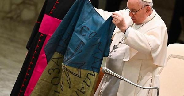Al termine dell’udienza generale, Papa Francesco ha chiamato accanto a sé un gruppo di bambini ucraini, srotolando una bandiera: "Questa bandiera - dice Francesco a braccio - viene dalla guerra, da Bucha. Anche qui ci sono alcuni bambini ucraini. Sono dovuti fuggire. Non dimentichiamo gli ucraini. E’ duro essere sradicato dalla propria terra per la guerra".