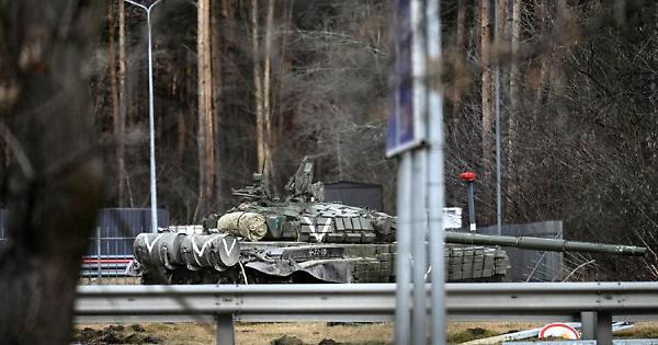 Immagini satellitari raccolte e analizzate da Maxar Technologies mostrano quello che appare essere un convoglio militare russo lungo circa 13 Km diretto verso sud attraverso la città di Velkyi Burluk, nell'Ucraina orientale, l'8 aprile. La città si trova a est di Kharkiv, vicino al confine con la Russia.