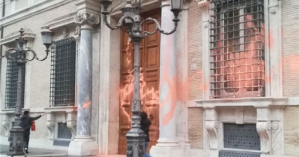 Quattro persone appartenenti al gruppo ambientalista Ultima Generazione hanno imbrattato Palazzo Madama con un getto di vernice arancione, utilizzando degli estintori. Alla base del gesto quello che gli ambientalisti definiscono come il disinteresse del mondo politico di fronte ai dati e le notizie sempre più allarmanti sul collasso eco-climatico. Cinque attivisti di Ultima generazione sono stati identificati, bloccati e condotti In questura dalla Digos. La loro posizione e' al vaglio e sono in corso le indagini.