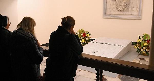 Aperte dalle 9 le Grotte vaticane, per l'omaggio di fedeli e pellegrini alla tomba del Papa emerito Benedetto XVI. Papa Ratzinger è stato sepolto dove prima si trovavano le spoglie di Giovanni Paolo II, spostate nel 2011, all’indomani della beatificazione, nella cappella di San Sebastiano. Giovedì scorso, al termine delle esequie celebrate in piazza San Pietro, dopo l’esposizione per tre giorni della salma, alla quale hanno reso omaggio 200mila persone, la bara in cipresso del Papa emerito, all’interno della quale sono stati conservati il Rogito, le monete e le medaglie del pontificato e il pallio, è stata riposta all’interno di un feretro in zinco, a sua volta conservato in una ulteriore cassa in rovere poi tumulata. Il nome del 265esimo successore di Pietro è inciso in una lastra in marmo bianco.