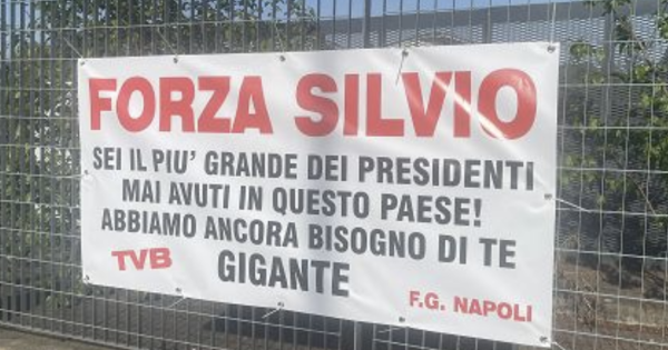 Un nuovo striscione è stato affisso poco fa sul muro di fronte all'ospedale San Raffaele, dove è ricoverato Silvio Berlusconi. «Sei il più grande dei presidenti mai avuti in questo Paese - si legge -. Abbiamo ancora bisogno di te, gigante». Ad apporre lo striscione, un uomo che, subito dopo aver completato l'affissione, si è dileguato senza proferire parola. In fondo al messaggio, campeggia una firma: “F.G. Napoli".