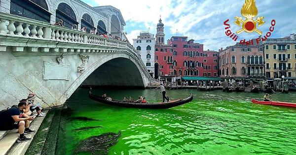 "Sembrerebbe da considerarsi un 'tracciante', ovvero un liquido che viene immesso in tutte quelle circostanze ove si verifica una perdita di acqua per comprenderne il tragitto seguito" la sostanza che ha colorato di verde fluo l'acqua del Canal Grande a Venezia, fa sapere la polizia che in una nota precisa che "l'azione al momento non è stata rivendicata e in base agli accertamenti condotti dai vigili del fuoco non sono emerse situazioni di pericolo per la salute della popolazione".