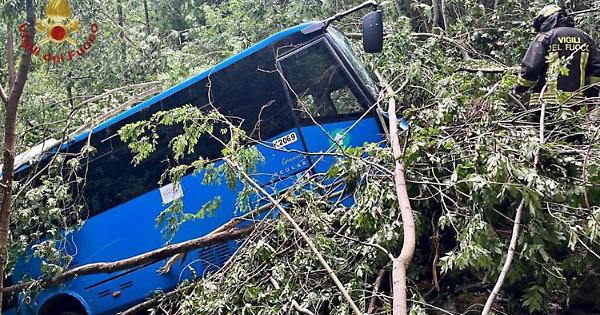 L'autobus, per cause in corso di accertamento, all'altezza di un tornante, è finito fuori strada: tra le ipotesi al vaglio quella che l'autista, 52 anni, possa essere stato accecato dal sole. L'autista è stato estratto dai vigili del fuoco in stato cosciente e le sue condizioni sono buone, avendo riportato escoriazioni e contusioni.