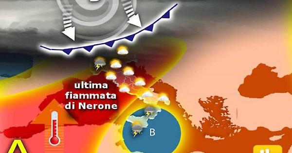 C’è una data per la fine di questa autentica tempesta di caldo? Questa sarà l’ultima fiammata africana della stagione, infatti sembrerebbe che da domenica 27 un ciclone dal Regno Unito scenda rapidamente di latitudine fino a raggiungere il Mar Mediterraneo e quindi l’Italia. Lo scontro di aria fresca atlantica e quella caldissima preesistente darà vita a fortissimi temporali con intense grandinate e forti raffiche di vento. Oltre ai temporali è previsto un importante crollo termico anche di 10-12°C rispetto a questi giorni. Questo radicale cambio di scenario si estenderà nei giorni successivi anche al Centro.