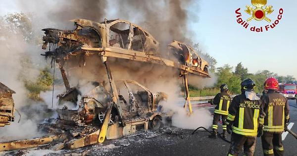 Incendio poco prima delle sette di questa mattina sull’autostrada Torino-Savona, in direzione della Liguria. Per cause ancora in corso di accertamento, in fiamme una bisarca che stava trasportando 6 auto. Sul posto i Vigili del fuoco. La circolazione in direzione Savona è interrotta.