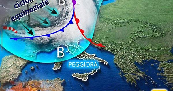 Tendenza: ciclone equinoziale sull'Italia, periodo di maltempo diffuso.