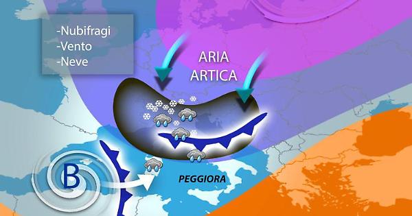 Maltempo sull'Italia con freddo, pioggia e neve nel weekend. Il tempo infatti sta per subire un drastico cambiamento. L’aria artica che sta attualmente affluendo su gran parte dell’Europa riuscirà a raggiungere anche il nostro Paese, provocando un rapido peggioramento.