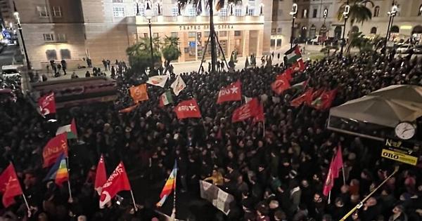 "Contro le vostre manganellate, Piantedosi dimettiti". E' la scritta che campeggiava sullo striscione esposto dai manifestanti in piazza Beniamino Gigli, davanti al Teatro dell'Opera di Roma e a poche centinaia di metri dal Viminale. Alla manifestazione statica, organizzata dopo gli scontri di Pisa e Firenze, circa 800 persone, tra bandiere della Pace, della Palestina e del Partito Comunista. Dalla piazza il grido "siamo tutti antifascisti".