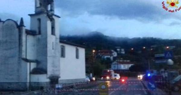 Il crollo ha interessato una parte della sommità del campanile, che è precipitata a terra sulla strada provinciale. Ricevuta la segnalazione della caduta, la Sala Operativa dei vigili del Fuoco ha provveduto all'immediato invio della squadra del distaccamento di Brugnato, giunta sul posto con una Aps (autopompaserbatoio) e cinque unità operative.