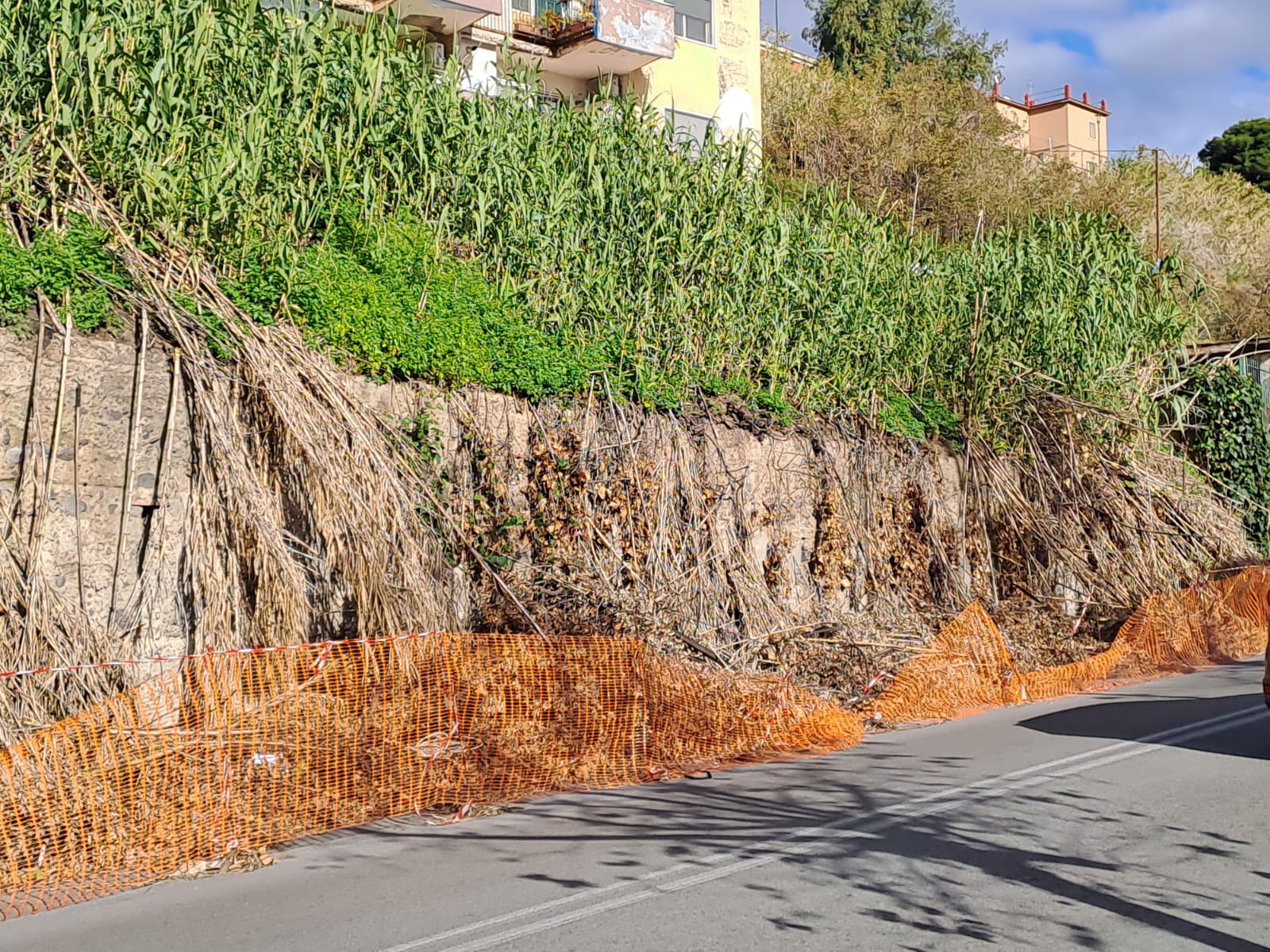 NAPOLI. Le canne, secche e ingiallite, sono state tagliate - o forse sono state piegate dal vento forte - nel mese di ottobre. Nessuno, però degli addetti alla manutenzione delle strade e del verde cittadino ha pensato mai alla necessità di rimuoverle dalla strada. Siamo in via Terracina, a Napoli, e da tre mesi la carreggiata, in direzione dello svincolo della Tangenziale di Fuorigrotta, è parzialmente ostruita dalle canne che si sono abbattute sulla strada e che hanno le loro radici in un terreno che sovrasta la via. A chi tocca rimuoverle? Forse al proprietario del terreno, ma il Comune dovrebbe intervenire e potrebbe farlo in danno.
