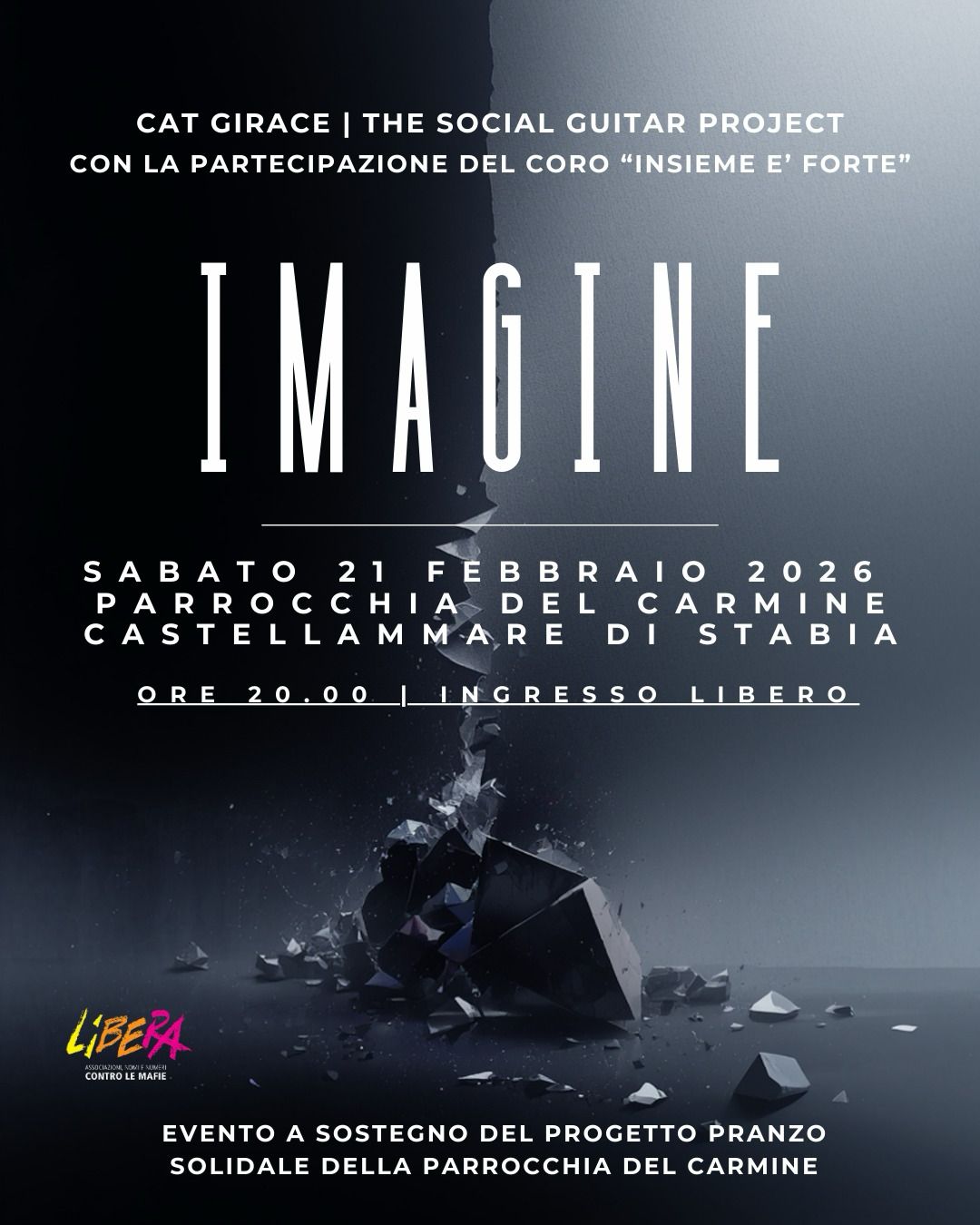 CASTELLAMMARE DI STABIA. Torna uno degli appuntamenti più attesi dell’inverno stabiese: Cat Girace & The Social Guitar Project tornano sul palco della Parrocchia del Carmine di Castellammare di Stabia con il concerto benefico dal titolo “IMAGINE”, in programma sabato 21 febbraio (ingresso libero dalle ore 20:00).