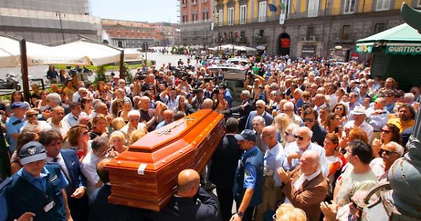 NAPOLI. Erano centinaia le persone che hanno affollato questa mattina la chiesa degli Artisti in piazza Trieste e Trento per l’ultimo saluto a Francesco Caccavale (nella foto di Marco Sommella), il patron del teatro Augusteo scomparso a 77 anni domenica in tarda serata per un infarto mentre era in vacanza con la moglie Alba al “Regina Isabella” di Lacco Ameno. La salma, trasportata questa mattina a Napoli da Casamicciola, ha percorso via Toledo sostando davanti al teatro Augusteo prima di arrivare in chiesa per la funzione religiosa. Tra i tantissimi presenti a confortare la moglie Alba, il figlio Giuseppe e i nipoti, anche Luca De Filippo, Giacomo Rizzo, Gino Rivieccio, Christian De Sica, Mirna Doris, Gloriana, Pino Moris, Gaetano Liguori del teatro Totò, Sasà Sperindeo del teatro Cilea, Lucio Mirra del teatro Diana e rappresentanti delle Istituzioni come il consigliere regionale Francesco Emilio Borrelli e l’assessore comunale alla Cultura Nino Daniele. Il sacerdote che ha officiato la funzione ha letto anche un messaggio di cordoglio giunto alla famiglia Caccavale dal Cardinale Crescenzio Sepe.
