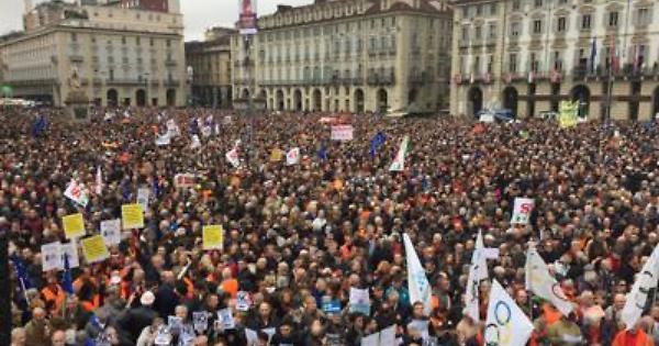 In migliaia a Torino per dire sì alla Tav. E' iniziata sulle note della canzone di Jovanotti ‘Io penso positivo’ la mobilitazione in piazza Castello promossa da ‘Sì, Torino va avanti’. Secondo gli organizzatori almeno 30mila persone hanno partecipato alla manifestazione. In piazza c'erano esponenti delle categorie economico produttive, della politica, del sindacato, imprenditori, lavoratori, giovani e anziani, volontari olimpici e gente comune che hanno accolto l'invito della vigilia: nessuna bandiera di appartenenza politica né striscioni di singole organizzazioni ma solo qualche tricolore, qualche bandiera europea e qualche bandiera di Torino 2006, a fianco a struscioni che dicono sì alla Tav, sì al lavoro, no alla Ztl prolungata.