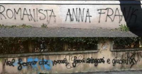 "Romanista Anna Frank" e poi una svastica seguita da "00100 Ssl", è invece la scritta comparsa in via dei Cerchi davanti al Circo Massimo.