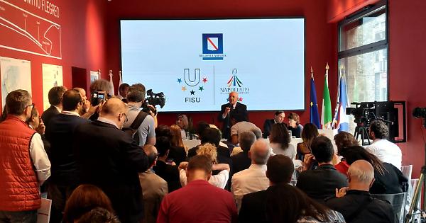 All’iniziativa sono intervenuti, tra gli altri, il Presidente della Regione Campania, Vincenzo De Luca, il Presidente della Regione Lombardia, Attilio Fontana, il Commissario straordinario per l'Universiade, Gianluca Basile. «Stiamo entrando nel vivo di questa avventura iniziata per noi tre anni fa», ha esordito De Luca. «L’Universiade – ha proseguito – rappresenta una occasione imperdibile per rilanciare nel mondo l’immagine di Napoli, della Campania e dell'Italia tutta. Organizzare questo evento ha richiesto un impegno finanziario ed organizzativo straordinario, ma abbiamo fatto questa scelta perché – ha spiegato il Presidente della Regione Campania – abbiamo intravisto le ricadute positive che Milano ha avuto nel mondo con l’Expo. Noi abbiamo la stessa ambizione con l’obiettivo di far crescere l’economia dell’accoglienza e aumentare il flusso turistico nella nostra regione». «Un altro motivo che ci ha spinto a volere questo evento - ha proseguito – è stato quello di intervenire nel riammodernamento di decine e decine di impianti sportivi sparsi sul territorio regionale, perché crediamo che lo sport possa essere uno dei canali principali per diffondere valori positivi soprattutto tra i ragazzi e tra i giovani che vivono in quartieri difficili delle nostre città».