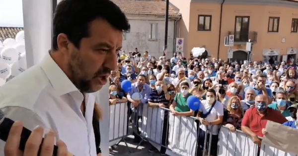 «Lascia il centro di Napoli, caro De Luca: alza le chiappe e vieni a vedere la gente di Irpinia che lavora per davvero e ama il proprio territorio» ha continuato Salvini. «L'emergenza sanitaria è stato un cavallo di battaglia da cabaret di De Luca. Ordinava le zone rosse (tra queste anche Ariano Irpino, ndr) ma senza inviare un solo medico o infermiere negli ospedali».