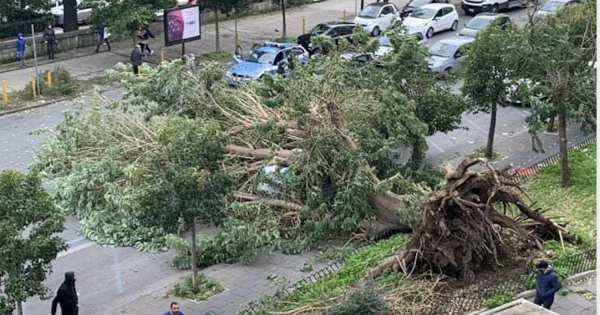 Tragedia sfiorata oggi a Napoli, in via Giulio Cesare a Fuorigrotta, dove un albero di grosse dimensioni si è abbattuto su un marciapiede. Sul posto la polizia di stato. Il fusto e i rami ingombrano anche parte della carreggiata.