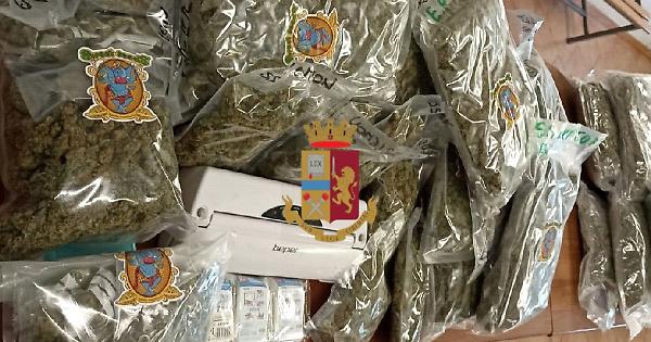 Gli agenti lo hanno fermato nei pressi di un distributore di carburanti in via Abbeveratoio ed hanno rinvenuto nel furgone 28 buste di marijuana, mentre nella sua abitazione in via Cupa Vicinale dell’Oliva hanno trovato altre 11 buste e 22 involucri della stessa sostanza per un totale di 18,5 kg, 7 bilancini di precisione, diverso materiale per il confezionamento della droga, un telefono cellulare e 35 euro.