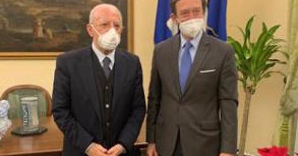 NAPOLI. Il presidente della Regione Campania Vincenzo De Luca ha incontrato oggi a Palazzo Santa Lucia, sede della Regione, l'ambasciatore della Repubblica Federale di Germania Viktor Elbling. Tra i temi affrontati nel corso dell'incontro, le collaborazioni con i Lander, una convention internazionale a Capri sulla tutela del paesaggio e la disponibilità ad offrire posti letto di terapia intensiva in caso di necessità. "E' stato un colloquio molto cordiale - ha riferito De Luca - durante il quale abbiamo discusso delle diverse e importanti forme di collaborazione con la Germania, sia sul fronte economico che culturale. In modo particolare si è valutato come definire insieme protocolli di collaborazione tra la Campania e alcuni land tedeschi per realizzare forme di integrazione nel campo delle produzioni e della ricerca scientifica. E' stata valutata anche una stretta forma di collaborazione in campo sanitario. Discutendo anche dell'emergenza Covid, la Campania ha offerto la disponibilità di posti letto di terapia intensiva per cittadini tedeschi in caso di necessità e di aggravamento della situazione epidemica". Inoltre, ha proseguito De Luca, "con l'Ambasciatore Elbling è stata valutata infine la possibilità di costruire una iniziativa di valore internazionale, nel prossimo anno, a cento anni esatti della prima storica conferenza internazionale sulla tutela del paesaggio che si svolse a Capri nel 1922, anno in cui venne varata la prima legge italiana sul paesaggio firmata da Benedetto Croce. L'obiettivo è quello di realizzare nel centenario di quell'evento, una convention di valore internazionale sui temi della transizione ecologica legata alla tutela del paesaggio e all'economia compatibile. Abbiamo quindi rivolto l'augurio di buon lavoro al nuovo Governo tedesco appena insediato", ha concluso De Luca.