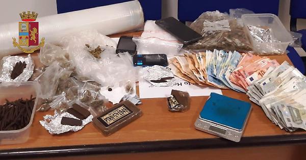 Dopo aver individuato due acquirenti in possesso di droga, i poliziotti hanno effettuato un'irruzione nell'immobile, al cui interno hanno trovato quattro avventori intenti a consumare bevande, risultati successivamente estranei ai fatti, e il 32enne, poi arrestato, che alla vista dei poliziotti ha tentato di scappare ma è stato bloccato. In un marsupio in suo possesso sono state trovate 4 dosi di hashish, 6 dosi di marijuana e la somma di 85 euro in banconote di vario taglio, ritenuta provento di pregresse vendite di stupefacenti.