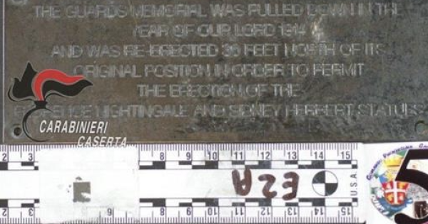 Una targa sottratta dal mezzo busto intitolato a John Ray, al British Museum di Londra, e un'altra in bronzo asportata dal Guards Crimean War Memorial, situata nella piazza Waterloo della capitale del Regno Unito. Entrambe ritrovate nell'appartamento di un 42enne di Castel Volturno (Caserta). A scoprire i cimeli sono stati i carabinieri della sezione operativa della compagnia casertana che avevano avviato le indagini sul soggetto, già autore del furto di una piastrella dal pavimento di una sala ottocentesca della Reggia di Caserta, avvenuto il 16 marzo 2023. Il soggetto, che all'epoca venne denunciato in stato di libertà, sarebbe però responsabile di altri furti di parti di opere d'arte, questa volta commessi all'esterno. È emerso, infatti, che il 42enne, nei suoi viaggi, anche fuori dall'Italia, era solito rubare e portare con sé altri "souvenir". In casa sua, nel corso di una perquisizione, oltre ai due pezzi prelevati a Londra, sono stati ritrovati monete, targhe commemorative e frammenti di statue. I cimeli, confezionati separatamente, erano nascosti in una cassa di legno, insieme a cataloghi riconducibili a siti culturali. Tutto il materiale rinvenuto è stato sottoposto a sequestro e sono tutt'ora in corso ulteriori accertamenti relativi all'esatta provenienza degli articoli e al loro eventuale interesse storico artistico. Per il 42enne, invece, è scattata una nuova denuncia.