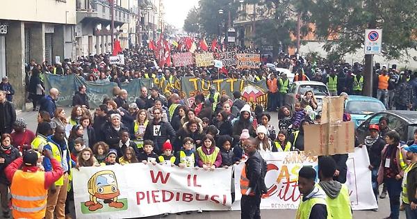CASERTA. «Non ci interessa rispondere a Salvini né fare polemica, il nostro appello è rivolto alla Regione Campania che è la proprietaria dello spazio e deve dare risposte mettendo a disposizione i fondi per mettere in sicurezza l'area». Lo afferma Virginia Crovella, attivista del Centro Sociale Ex Canapificio che è stato sequestrato nei giorni scorsi per un «concreto pericolo di crollo» su disposizione della Procura della Repubblica di Santa Maria Capua Vetere. La manifestazione di protesta indetta per oggi dagli attivisti del Centro sociale che ospita 200 migranti è partita regolarmente alle 15 dalla Stazione ferroviaria di Caserta dove si sono radunate circa 4mila persone. In prima fila davanti al corteo, che sta ancora sfilando a Caserta, ci sono le famiglie italiane che vivono l'ex canapificio quotidianamente e le famiglie dello sportello a reddito che, insieme agli immigrati, da anni portano avanti battaglie per aumentare le famiglie a reddito che possono accedere a bonus e sussidi. Presenti nel corteo anche le famiglie del Piedibus, il servizio di accompagnamento a scuola di 200 bambini grazie al quale gli alunni delle elementari e medie inferiori vengono accompagnati a piedi a scuola da adulti con le stesse modalità dello scuolabus. Alla manifestazione partecipano anche tanti immigrati provenienti da Castel Volturno ma anche associazioni e Sprar che hanno aderito da tutta Italia oltre che i presidi di Emergency e Libera. Nel corteo c'è anche il registra Andrea Segre, che tornerà martedì a Caserta on gli attori Toni Servillo e Valerio Mastandrea per una serata cinematografica di sostegno in favore del centro sociale dell'ex canapificio. Presenti, infine, anche tantissimi studenti e gruppi degli Scout Agesci della Campania.
