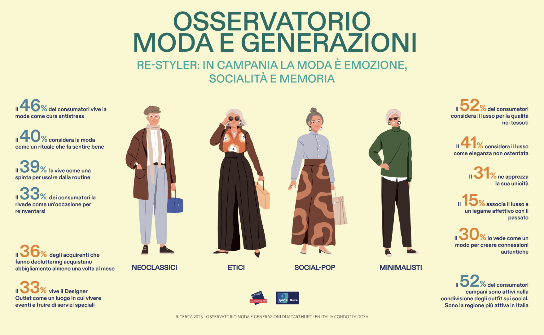 Nel complesso, il Re-Styler campano emerge come un consumatore emotivo, attivo e connesso. Vive la moda come cura, gioco e memoria, e cerca esperienze capaci di rappresentarlo davvero. Per i brand è un interlocutore prezioso: coinvolto, espressivo e aperto al dialogo.