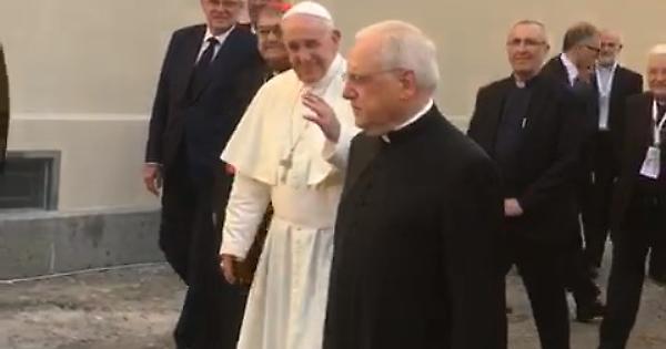 NAPOLI. Papa Francesco ha fatto il suo ingresso nella sede della Sezione San Luigi della Pontifica Facoltà Teologica dell'Italia Meridionale, in via Petrarca a Napoli, dove seguirà i lavori dela giornata conclusiva del convegno "La Teologia dopo Veritatis Gaudium nel contesto del Mediterraneo", che chiuderà con un intervento previsto alle 12. Papa Francesco è stato accolto al suo arrivo dal cardinale Crescenzio Sepe, arcivescovo di Napoli, e ha poi salutato il prefetto di Napoli Carmela Pagano, il sindaco di Napoli Luigi de Magistris e il presidente della Regione Campania Vincenzo De Luca, per prendere poi posto sul palco allestito nel giardino della facoltà.