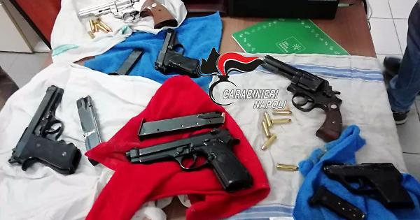 NAPOLI. I carabinieri della compagnia Vomero hanno sequestrato 6 pistole nascoste sopra ad una tettoia di un condominio in via Liguria nel quartiere Miano. Si tratta di due revolver di cui uno con matricola abrasa, tre semiautomatiche due delle quali con matricola abrasa e una quarta semiautomatica risultata provento di furto. Tutte le armi avevano le cartucce nel serbatoio, erano pronte all'uso ed erano ben pulite. A due delle semiautomatiche, inoltre, era stato inserito un caricatore più lungo e capiente così che invece di 15 colpi avrebbero potuto spararne 25. Le armi sono state sequestrate in attesa di essere sottoposte agli accertamenti dattiloscopici e balistici presso il Racis di Roma.