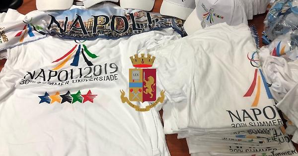 NAPOLI. Ieri pomeriggio gli agenti dell’Ufficio Prevenzione Generale hanno denunciato in stato di libertà due uomini, per vendita e ricettazione di prodotti contraffatti. I poliziotti, in servizio di controllo del territorio in zona Fuorigrotta, hanno bloccato i due uomini nei pressi della fermata “Mostra” della Cumana, intenti a vendere t-shirt e cappellini con il logo delle Universiadi. Controllato il materiale, i poliziotti hanno rinvenuto cinquantatré magliette, tredici cappellini, quindici sciarpe e novantuno fasce tipo bandana, tutti contraffatti recanti il logo dell’evento. Il materiale è stato sequestrato e i due uomini sono stati denunciati in stato di libertà.