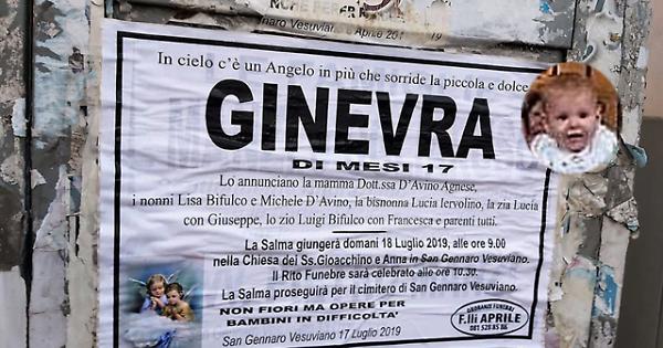 CASERTA. Manifesti funebri anche a Caserta per le esequie della piccola Ginevra, la bambina di 16 mesi uccisa lunedì scorso a San Gennaro Vesuviano dal papà, il casertano Salvatore Narciso, che poi si è poi lanciato dal balcone. Ora è piantonato in ospedale a Napoli in attesa di un intervento chirurgico. I funerali della piccola si sono svolti oggi nella chiesa dei Santi Gioacchino e Sant'Anna a San Gennaro Vesuviano, dove è avvenuta la tragedia. Sui manifesti soltanto il nome della piccola, senza cognome e l'invito a fare opere di bene a favore dei bambini. Anche se la vicenda è ancora tutta da chiarire, sembra che l'uomo abbia fatto questo gesto perché si stava separando dalla moglie Agnese D'Avino, medico. Non ci sono state mai denunce tra i due coniugi che abitano a Caserta, solo piccole e futili discussioni. Narciso parente di un noto civilista, lavorava in uno studio legale a Caserta.