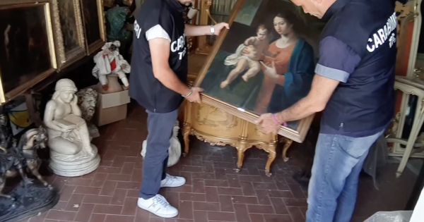 NAPOLI. Vasta operazione, questa mattina, in diverse città italiane, contro un gruppo di persone ritenute responsabili del reato di associazione per delinquere finalizzata alla ricettazione di opere d'arte, quali dipinti, sculture in bronzo e marmo, oggetti chiesastici, provento di furto in territorio nazionale ed alla loro esportazione illecita, per la successiva commercializzazione in ambito internazionale. Al termine di una complessa attività d'indagine della Procura della Repubblica di Reggio Calabria, diretta dal Procuratore Giovanni Bombardieri, i Carabinieri del Nucleo Tutela Patrimonio Culturale di Cosenza, coadiuvati da quelli del Reparto Operativo Tutela Patrimonio Culturale di Roma, dei Nuclei Tutela Patrimonio Culturale di Napoli, Roma, Bari, Perugia, Firenze, Monza, Torino, della Sezione Tutela Patrimonio Culturale di Siracusa e dell'Arma territoriale hanno dato esecuzione a 4 ordinanze di custodia cautelare agli arresti domiciliari, emesse dal giudice per le indagini preliminari presso il Tribunale Ordinario di Reggio Calabria e a 20 decreti di perquisizione emessi dalla locale Procura della Repubblica nei confronti di altrettanti indagati.