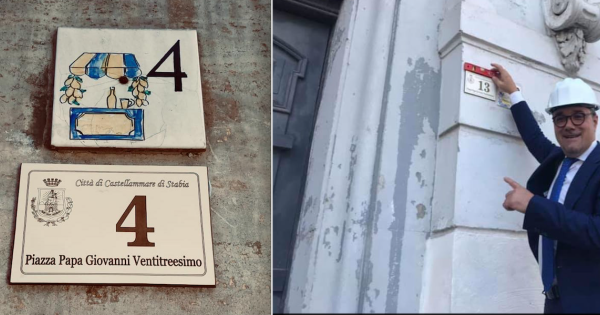 Ma, intanto, sul web impazzava una polemica legata alla scelta del Comune di affiancare alle antiche mattonelle dei numeri civici le nuove indicazioni con lo stemma della città. Il lavoro è stato affidato alla Soget, società che già risulta poco amata dagli stabiesi essendo suo il compito di notificare e riscuotere le tasse comunali.