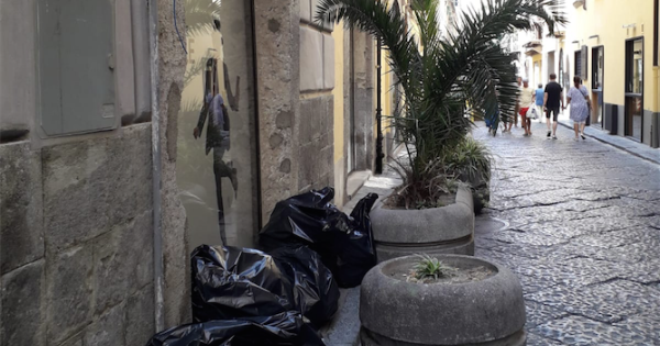 NAPOLI. Un’ordinanza dell’8 agosto del sindaco de Magistris vieta l’utilizzo dei sacchetti neri per il conferimento dei rifiuti. La multa per chi non rispetta l’ordinanza arrivano fino a 500 euro. Eppure in città se ne vedono ancora molti. E non solo in luoghi meno controllati come i quartieri della periferia cittadina, ma anche a Chiaia, in quello che dovrebbe essere il salotto buono della città. In via Alabardieri, a dieci metri dall’imbocco di piazza dei Martiri, si notano in pieno giorno almeno tre sacchi neri depositati in pieno giorno alle spalle delle fioriere.