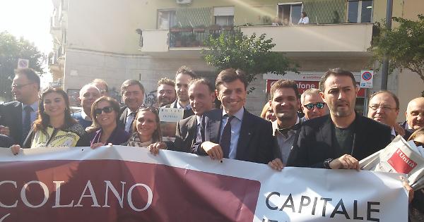 ERCOLANO. L'appuntamento è alle 17 al Ministero dei Beni culturali, a quell'ora sapremo se sarà Ercolano la Capitale della Cultura italiana 2016. In palio ci sono un milione di euro di fondi e una straordinaria occasione di attrazione turistica da tutto il mondo. Nel pomeriggio sarà la speciale commissione formata da sette esperti a decidere. Per diventare Capitale della cultura italiana, Ercolano dovrà battere la concorrenza di altre nove città: Aquileia, Como, Mantova, Parma, Pisa, Pistoia, Spoleto, Taranto e Terni. L'autobus con a bordo il sindaco è partito alla volta di Roma questa mattina tra gli applausi dei presenti in piazza Trieste e Trento a Ercolano.