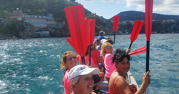 VICO EQUENSE. Hanno pagaiato per riscattarsi dal peso di un’esperienza dura, che segna nel profondo chi è costretta a viverla. Il cancro al seno si combatte anche così, con una iniziativa che dà energia e gioia e si chiama “Dragon Boat”. L’Associazione “RicordiPerduti” di Castellammare di Stabia ha collaborato con la Lega Navale Italia, sezione di Vico Equense, per formare il primo equipaggio di dragon-boat in Campania. La Lni, sezione di Vico Equense, presidente Giuseppe Vanacore, è stata la prima e per adesso unica a possedere questa imbarcazione nella regione Campania. L'equipaggio è composto da sole donne, che hanno avuto problemi o che sono state operate di tumore al seno. L’idea è stata interamente proposta e portata avanti dal presidente Lni sezione Vico Equense e ha avuto il sostengo dell’Asl Napoli 3 Sud, del direttore dell’Oncologia dell’Ao Cardarelli di Napoli, del direttore del Registro Tumori dell’Asl Napoli 3 Sud e del Direttore Breast Unit Asl Napoli 3., insieme con il sindaco di Vico Equense, Buonocore. La giornata si è svolta all’insegna della gioia e della grinta delle donne che hanno formato l’equipaggio della dragon boat. Ora, però, alla pagaiata segue l’impegno anche per le donne che si trovano nell’incertezza di sottoporsi a una visita medica. Poiché primo sentimento da sconfiggere, per prendere in tempo la malattia, è la paura. Pertanto, sono in programma visite senologiche gratuite con camper appositamente attrezzato messo a disposizione dell’associazione “Cypraea” della dottoressa Cecilia Coppola.