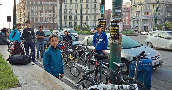 NAPOLI. Si è tenuto venerdì scorso (6 novembre) il primo Bike to School dell'anno organizzato in più scuole di vari quartieri della città: Vomero (S.M.S. Viale delle Acacie e Belvedere e 38°C.D. G. Quarati), Chiaia (Liceo Mercalli) e Bagnoli (plesso Madonna Assunta dell'I.C.73° M. Ilioneo). Durante l'evento sarà testata l'app sperimentale Bike to School, per il momento disponibile solo su smartphone android ("APP-ON” POR FESR LAZIO 2007 – 2013), e per la prima volta i punti di incontro sono stati indicati dalla segnaletica "Bicibus" creata dai biketoschooler romani. A Chiaia l'appuntamento è stato in piazza Vittoria, colazione insieme e poi tutti a scuola.
