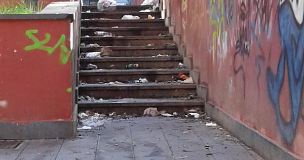Scale sporche, non vengono pulite da giorni. Manca manutenzione. La zona è completamente dimenticata dal Comune