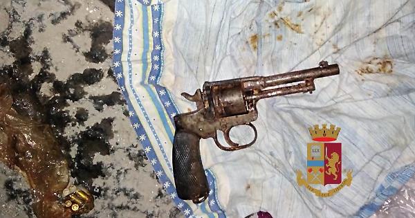I poliziotti hanno ispezionato il pozzetto di una rete fognaria scoprendo, avvolta in un canovaccio, una pistola “Patent Rast & Gassner” completa di 13 cartucce.