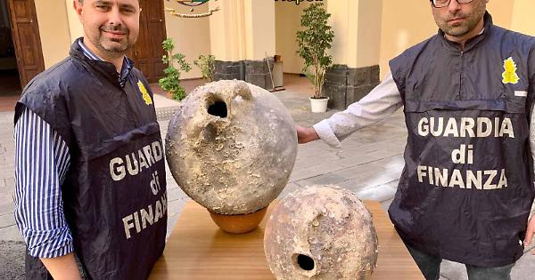 TORRE DEL GRECO. Il Comando provinciale della Guardia di Finanza di Napoli, nell'ambito di una più ampia attività di polizia economico-finanziaria, ha sequestrato due anfore antiche, di grande pregio e in buono stato di conservazione, trovate in possesso di un imprenditore di Torre del Greco indagato per reati fiscali. In particolare, la compagnia della Guardia di Finanza di Torre Annunziata, durante l'esecuzione di un sequestro preventivo per equivalente disposto dal gip su richiesta della Procura oplontina, finalizzato a ricercare beni che potessero soddisfare le pretese erariali sorte da un debito tributario di 300mila euro, ha scoperto a casa dell'imprenditore, ex miticoltore, le anfore antiche, una betica risalente al II-III secolo a.C., e una Greco-italica risalente al IV secolo a.C. Le successive perizie tecniche condotte dalla Soprintendenza archeologia, belle arti e paesaggio per l'area metropolitana di Napoli hanno confermato che le anfore ritrovate costituiscono preziosi reperti storici, appartenenti all'era Greco-romana, trafugate dal fondale marino. Il loro valore sul mercato nero si aggira intorno a diverse decine di migliaia di euro. I preziosi reperti sono stati sequestrati e il responsabile è stato segnalato alla Procura di Torre Annunziata per violazioni al Codice dei Beni culturali e, quindi, per reati che si andranno a sommare alle imputazioni già pendenti in materia tributaria.